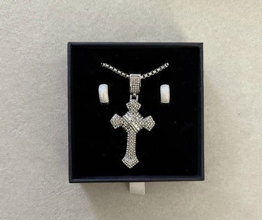 Set collana blessed+orecchini iced full pavè